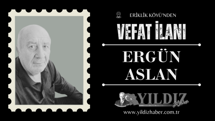 Eriklik Köyü'nden Davutoğulları'ndan Merhum Abdulkadir Aslan’ın oğlu, Merhum Emin Aslan ve Emekli Bekçi Veli Aslan’ın kardeşleri, Gülşen Aslan’ın eşi, Büşra ve Kürşat Aslan’ın babaları Ergün Aslan vefat etti.