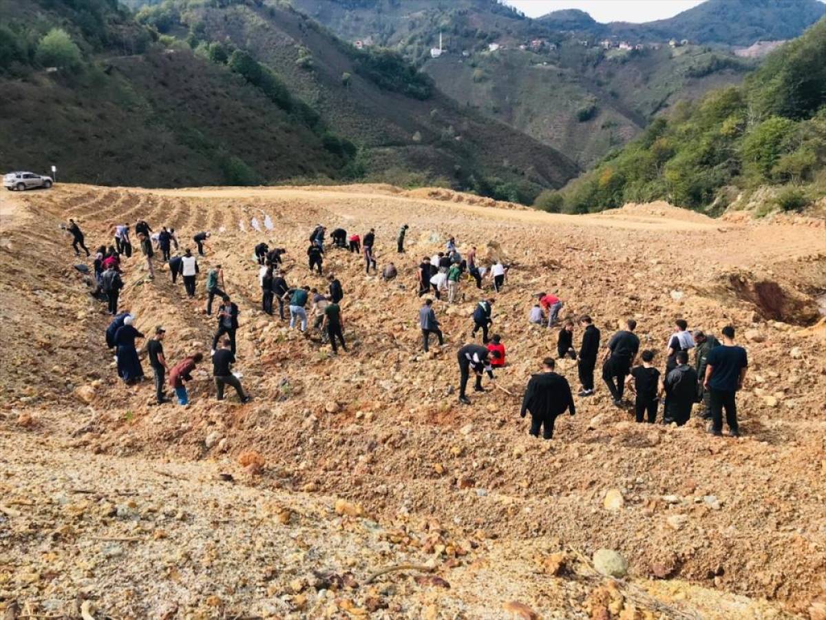 Giresun'un Espiye ilçesinde üniversite öğrencileri 120 fidanı toprakla buluşturdu.