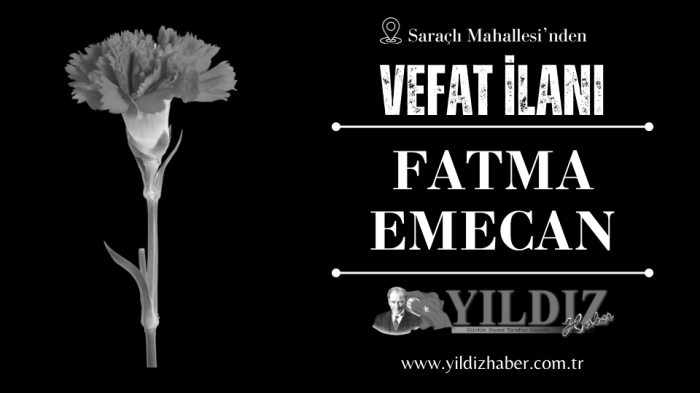 Saraçlı Mahallesi'nden, Emekli Polis Memuru Salih Emecan’ın eşi; Ümit, Erdinç, Ali ve Abdullah’ın anneleri; Hasan Aslan’ın ablası Fatma Emecan vefat etti.