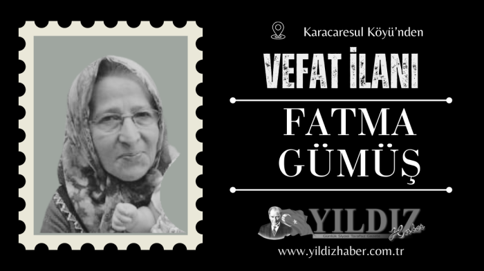 Karacaresul Köyü’nden Çavuşoğulları’ndan Hasan Gümüş’ün eşi; Yusuf, Furkan, Canan, Gülcan ve Merhum Yüksel Gümüş’ün anneleri Fatma Gümüş vefat etti.