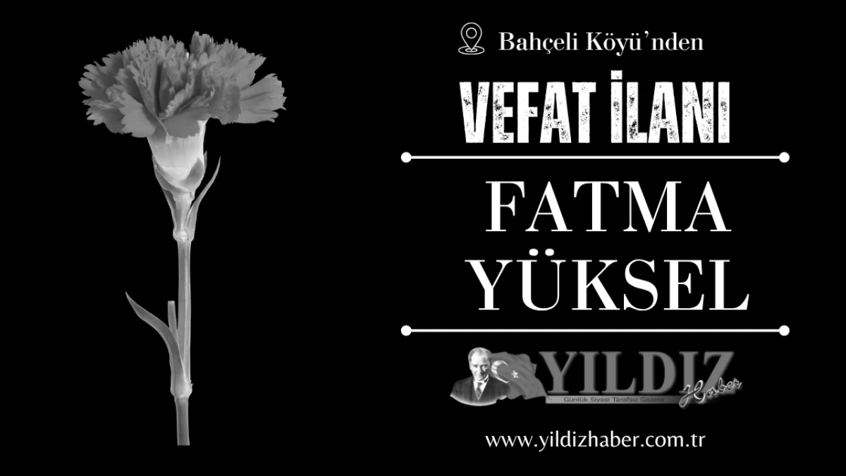 Bahçeli Köyü’nden, Hatipoğulları’ndan, Bahçeli Köyü eski muhtarlarından merhum Mustafa Yüksel’in eşi; İmdat Yüksel’in annesi Fatma Yüksel vefat etti.