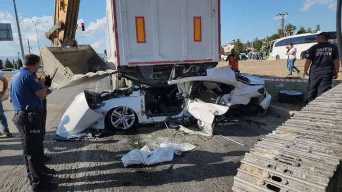 Kazaya ilişkin güvenlik kamerası kaydı ortaya çıktı. Görüntülerde beyaz bir otomobilin hızla gelerek kırmızı ışıkta duran tıra arkadan çarptığı görülüyor.