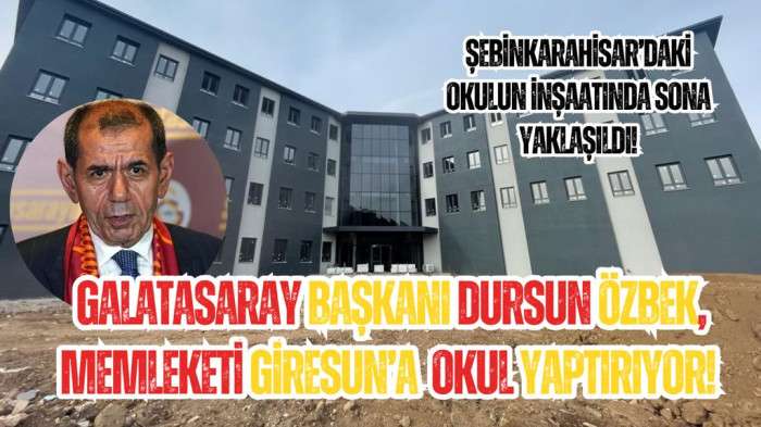 Galatasaray SK. Başkanı Dursun Özbek’in, memleketi Giresun'un Şebinkarahisar ilçesinde yaptırdığı; Hasan-Kezban Özbek Mesleki ve Teknik Anadolu Lisesi’nin inşaatında sona yaklaşıldı.