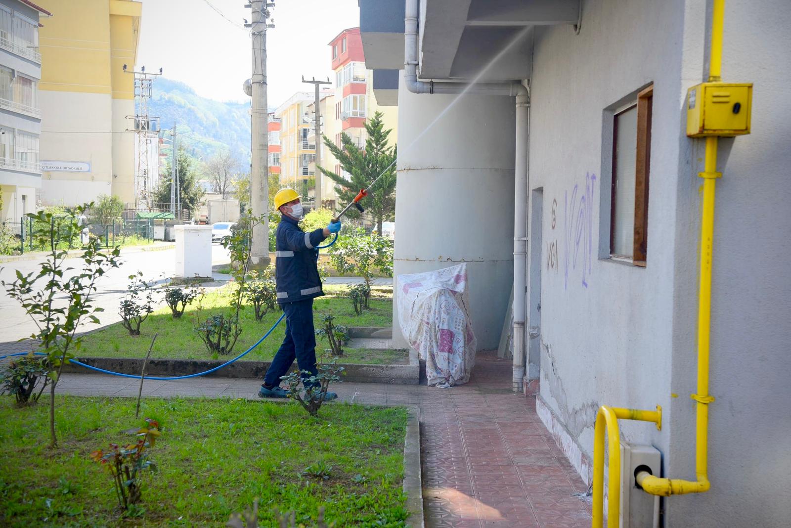 Ekipler tarafından, yeşil alanlar, binalarda barınabileceği noktalar, metruk binalar ile yol ve kaldırımlarda ilaçlama çalışması yürütüldü.