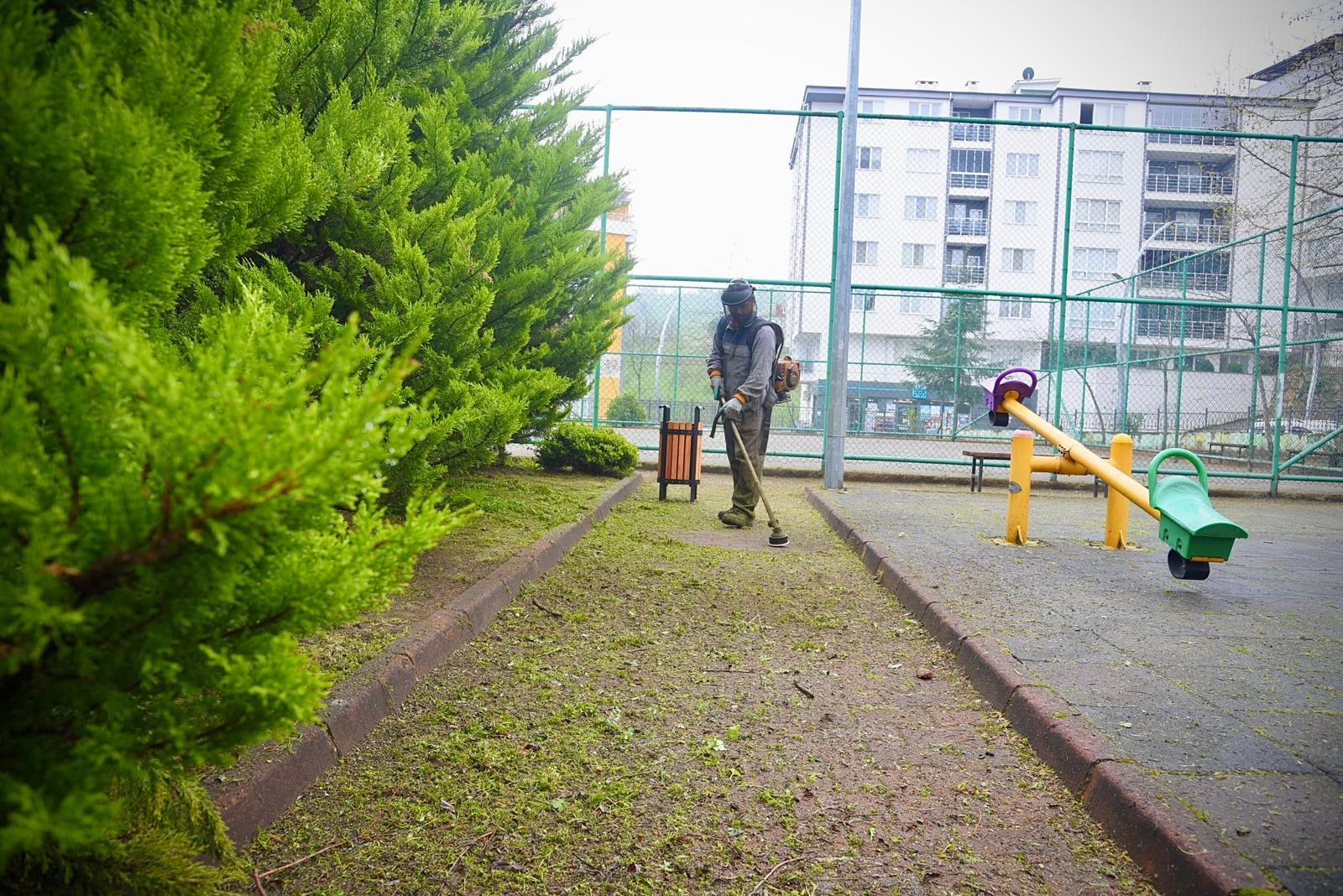 Park ve Bahçeler Müdürlüğü ekipleri tarafından yürütülen çalışmalar kapsamında ot biçme ve genel temizlik faaliyetleri titizlikle gerçekleştiriliyor.