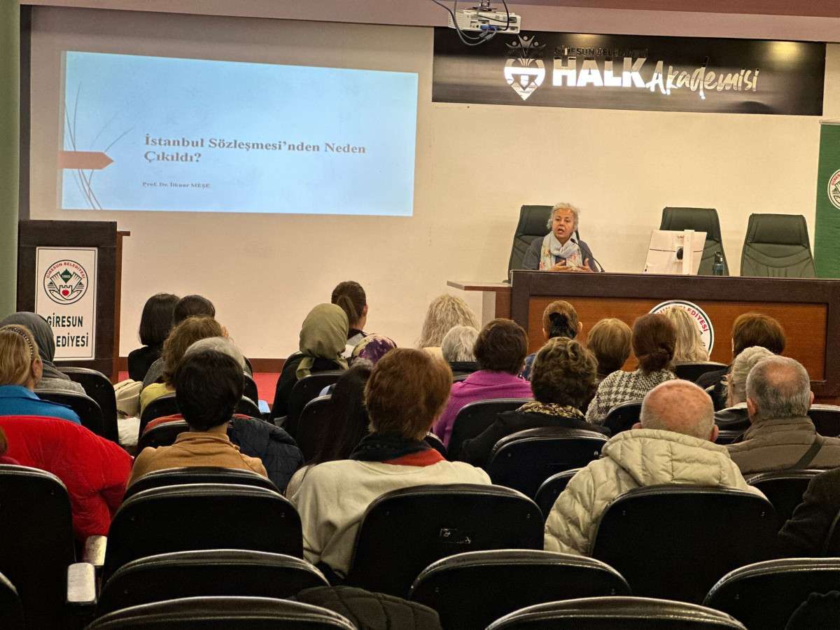 Giresun CHP İl Kadın Kolları ile Giresun Eğitim Sen Kadın ve Eğitim Sekreterlikleri organizesinde hazırlamış olduğu konferans serisinin ilki ‘İstanbul Sözleşmesi'nden Neden Çıkıldı?’ konulu çalışma hafta sonu Giresun Belediyesi Halk Akademisi Salonu'nda gerçekleştirildi.