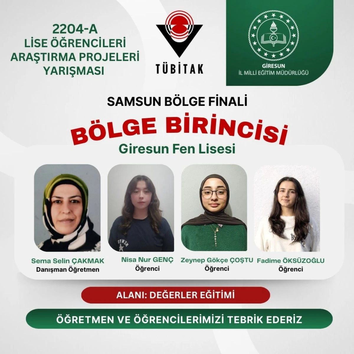 Okul Müdürü Oğuz Yayla, “Bölge sergisinde Giresun’u başarıyla temsil eden ve ilimize büyük gurur yaşatan kıymetli öğretmen ve öğrencilerimizi tebrik ediyoruz.