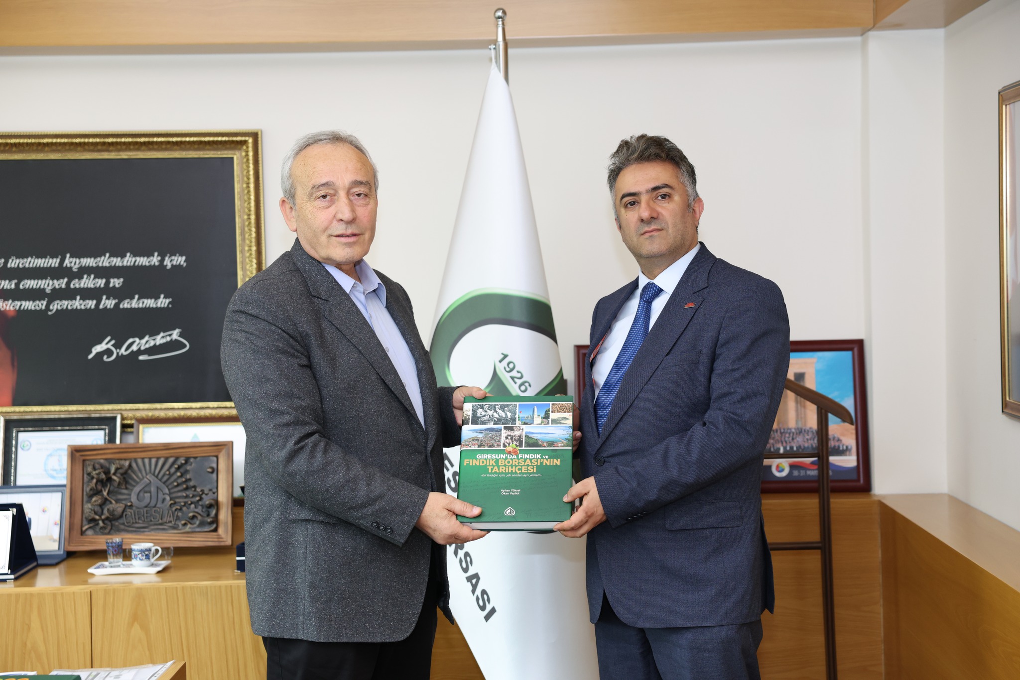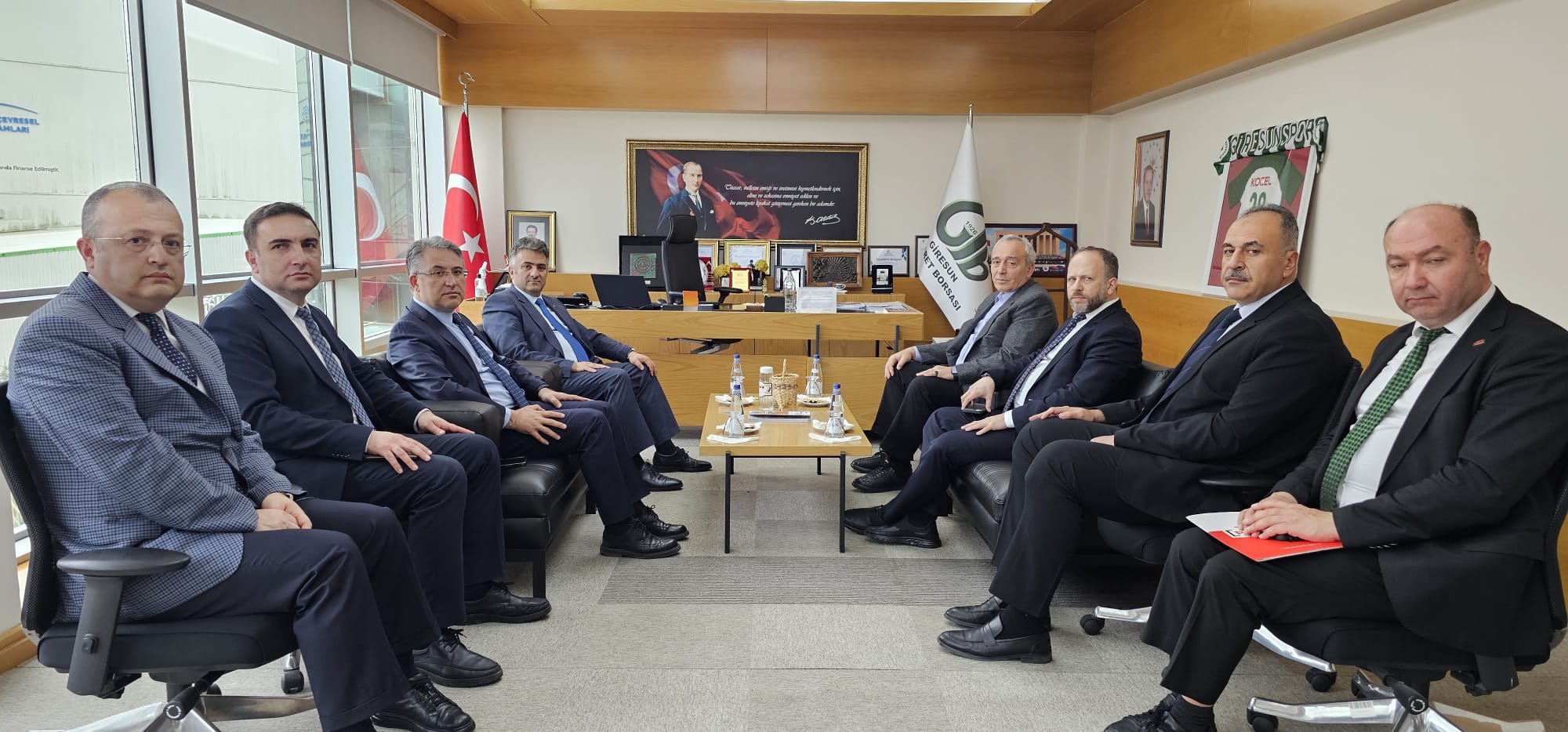 Heyet, Giresun Ticaret Borsası Yönetim Kurulu Başkanı Hamza Bölük ile bir araya gelerek kurumlar arası iş birliği imkânları ile Giresun’un sanayi potansiyeli üzerine görüş alışverişinde bulundu.