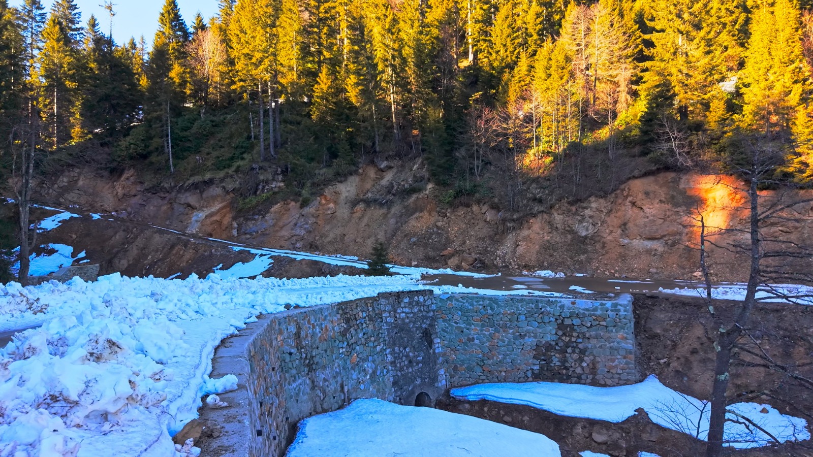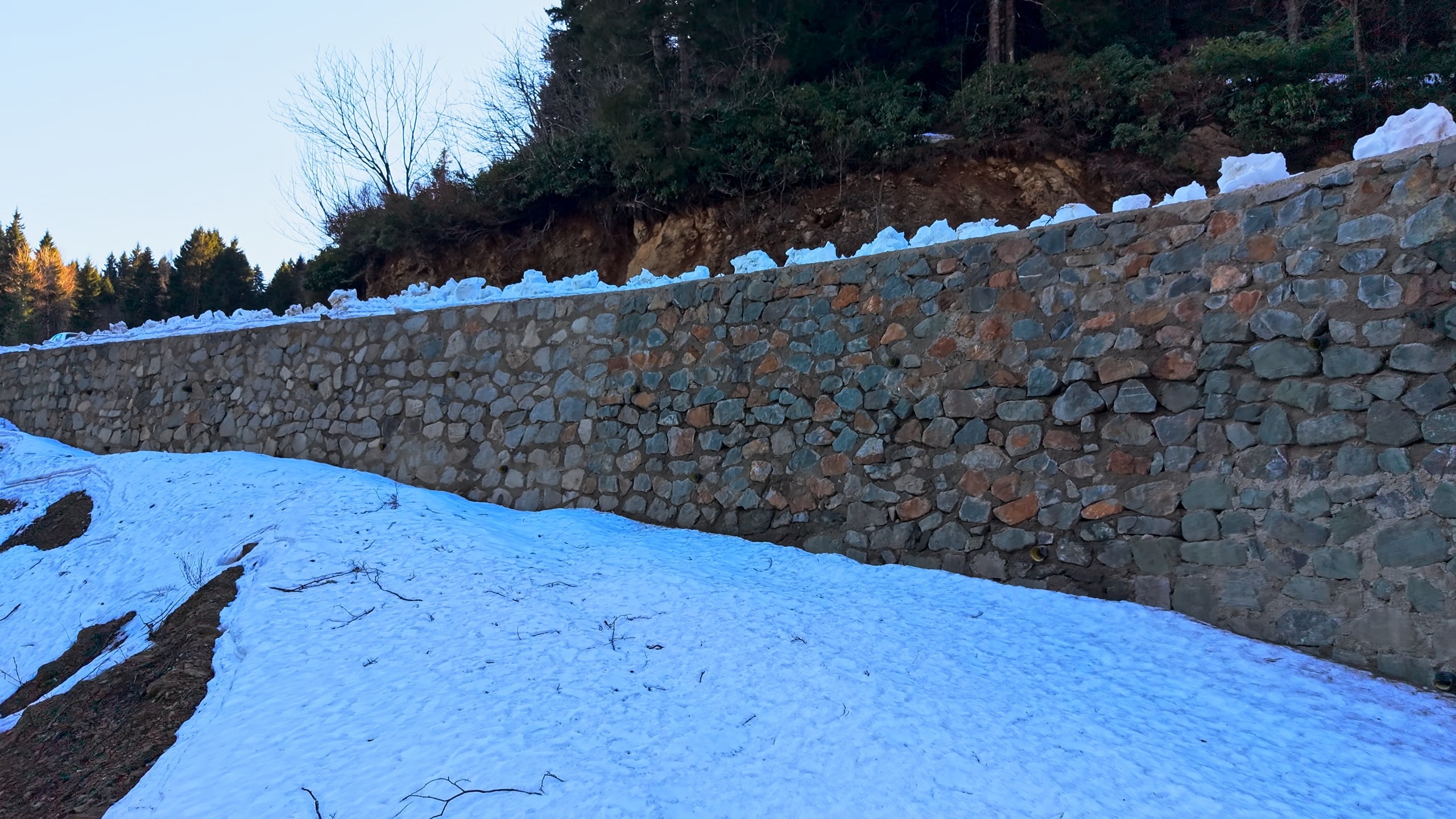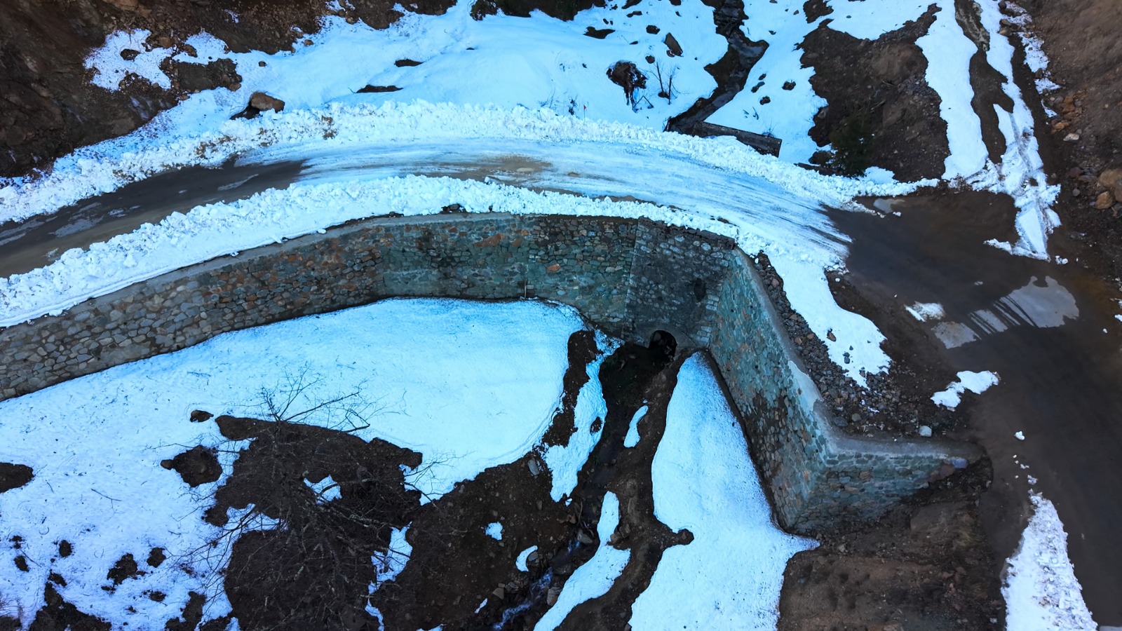 13 köyü kapsayan güzergâhta gerçekleştirilen çalışma kapsamında, heyelan riskini azaltmaya yönelik devasa harçlı taş duvar uygulaması yapıldı.