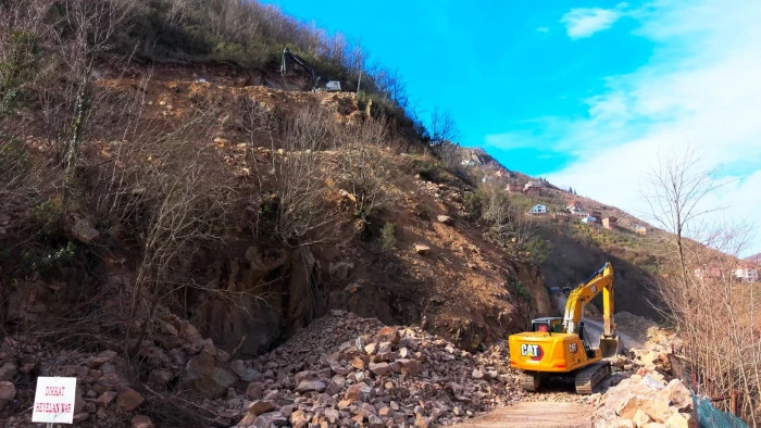 Zorlu arazi şartlarında yürütülen çalışmalarla dik yamaç kademelendirilerek toprak baskısı hafifletildi ve olası felaketin önüne geçildi.