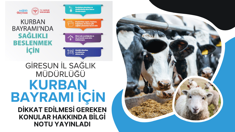 Giresun İl Sağlık Müdürlüğü tarafından yaklaşan kurban bayramında ve kurban eti tüketimi ile ilgili alınan tedbirler hakkında bilgi notu yayınladı.