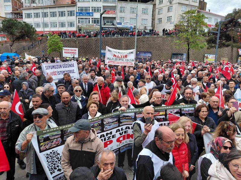 Mitinge katılan vatandaşlar, “ Giresun maden istemiyor” sloganlarıyla bölgedeki madencilik faaliyetlerine karşı tepkilerini ortaya koyarken, fındık üretim alanlarının korunmasının da hayati önem taşıdığını vurguladı.