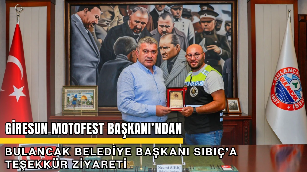 Etkinliğe sağladığı katkılar dolayısıyla Giresun Motofest Başkanı Mehmet Şimşek, Bulancak Belediye Başkanı Necmi Sıbıç’ı makamında ziyaret ederek teşekkürlerini iletti.