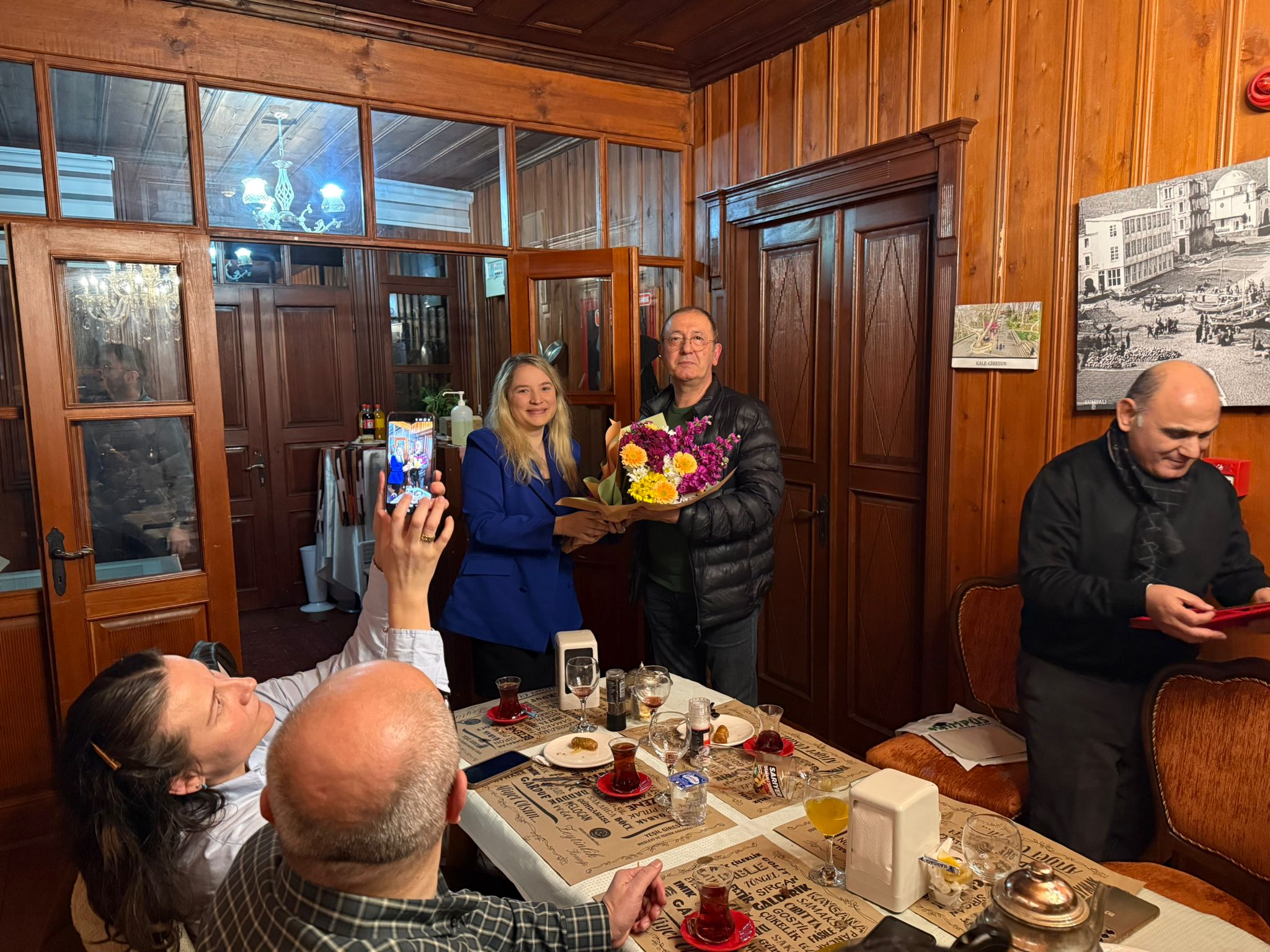 Düzenlenen yemekte ayrıca Giresun Meslek Yüksekokulu’ndan son olarak emekli olan Dr. Öğr. Üyesi Muaffak Sarıoğlu'na da çiçek, plaket ve hediye takdim edildi.