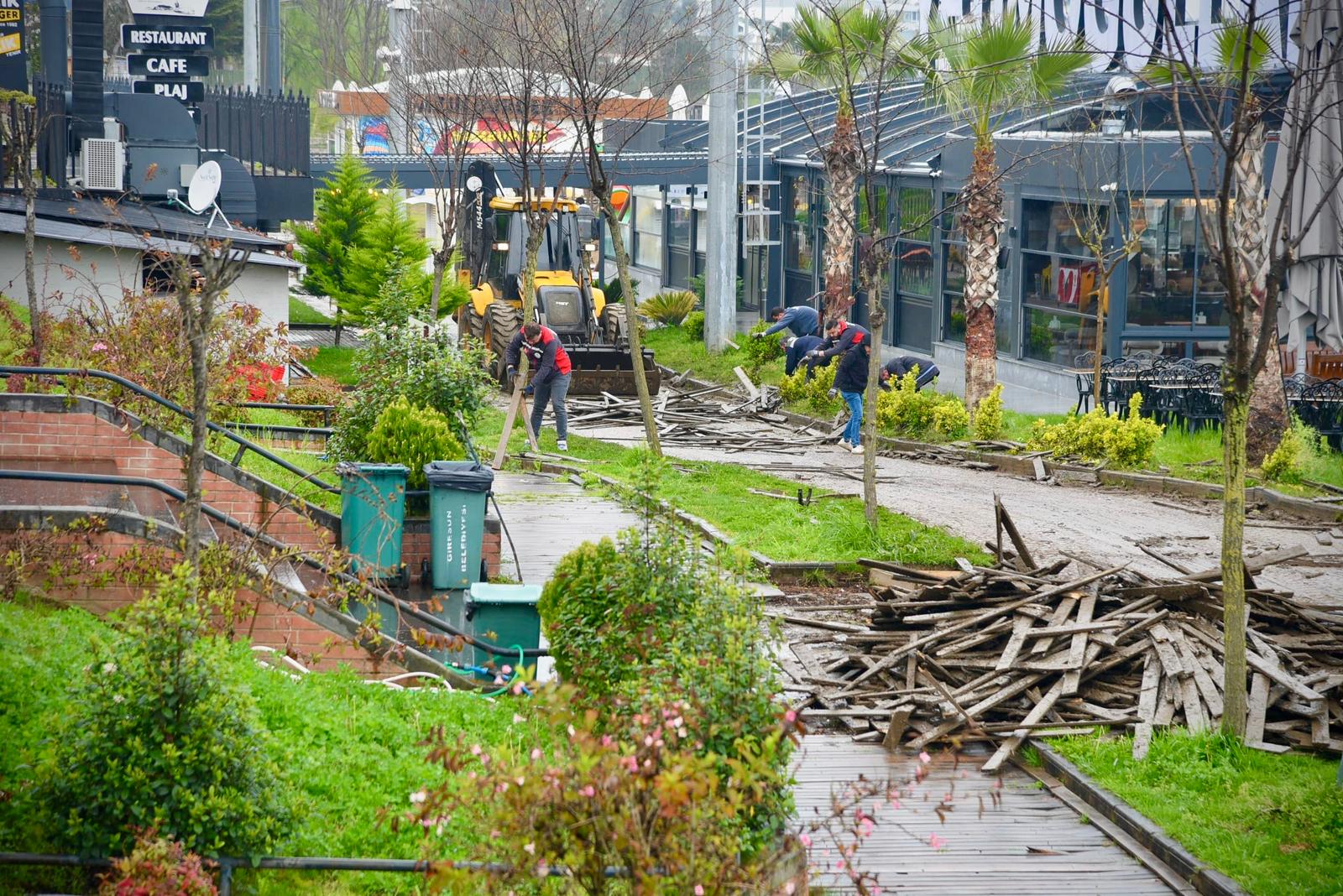 Bu kapsamda, özellikle gençlerin yoğun ilgi gösterdiği kafe ve restaurant tarzı işletmelerin bulunduğu bölgede yer alan ve zamanla yıpranarak çürüyerek tehlike arz etmeye başlayan, vatandaşların da şikayetlerine yol açan ahşap yürüyüş yolları ve diğer üstyapı çalışmaları için harekete geçildi.