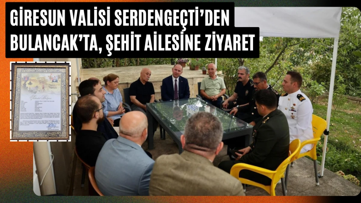 Giresun Valisi Mehmet Fatih Serdengeçti, 26 Temmuz’da şehit olan Bulancaklı İkmal Er Semih Erdoğan’ın ailesini ziyaret ederek Şehadet Belgesini takdim etti.