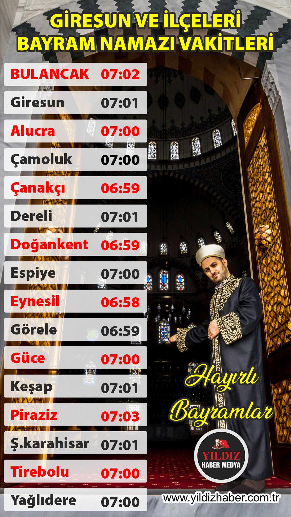 Giresun İlçelerinde Bayram Namazı Saatleri