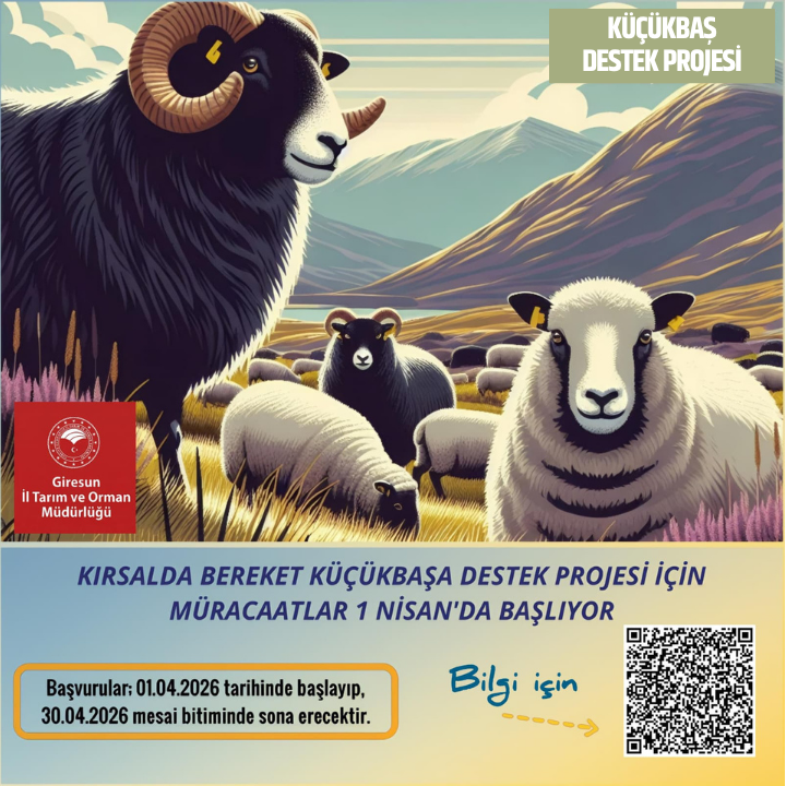 Giresun İl Tarım ve Orman Müdürlüğü tarafından yapılan duyuruya göre, proje başvuruları 1 Nisan 2026 tarihinde başlayacak ve 30 Nisan 2026 mesai bitiminde sona erecek.