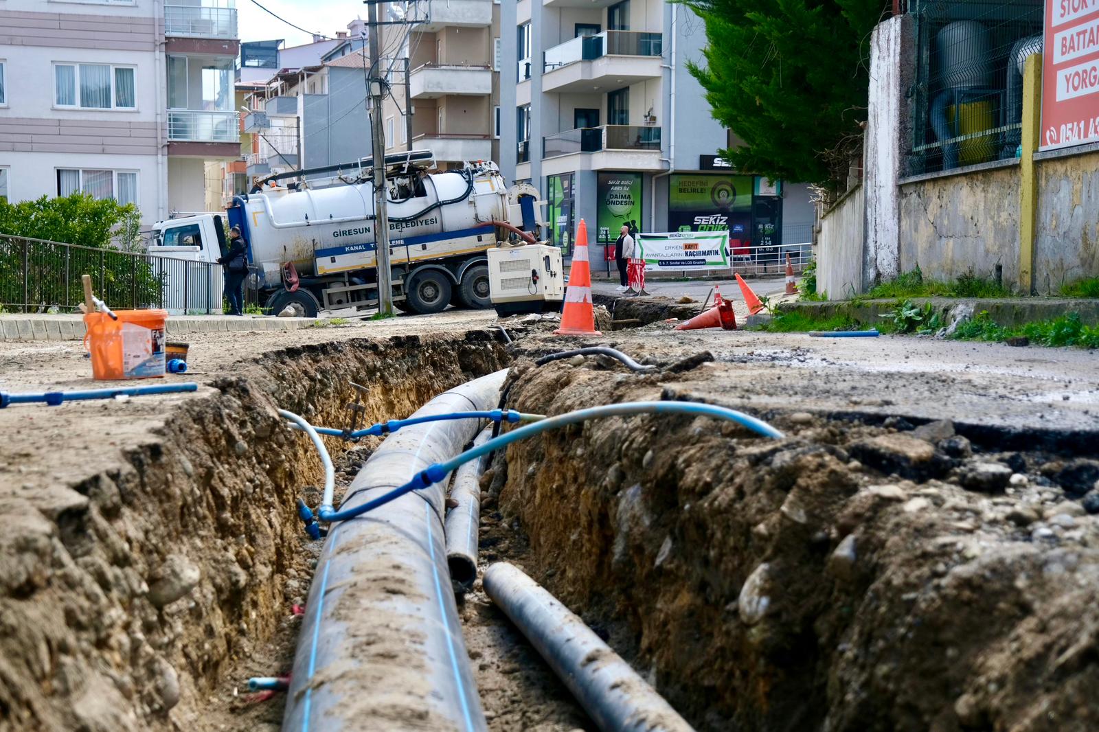 Giresun Belediyesi, içme suyu hatlarında kullanılan asbest boruları polietilen borularla değiştirme çalışmalarını sürdürüyor.