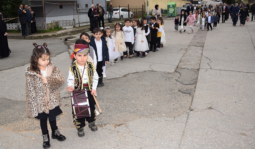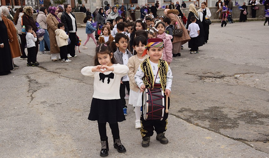 Programın camide gerçekleştirilen ilk bölümünün tamamlanmasının ardından minik öğrenciler cami çevresinde Ramazan’ı karşılayan anlamlı bir yürüyüş gerçekleştirdi. Yürüyüşte, minik yüreklerin heyecanı yüzlerine yansırken ortaya renkli görüntüler çıktı.