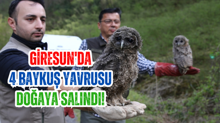 Giresun'da tedavi ve bakım süreci tamamlanan 4 baykuş yavrusu doğaya bırakıldı.