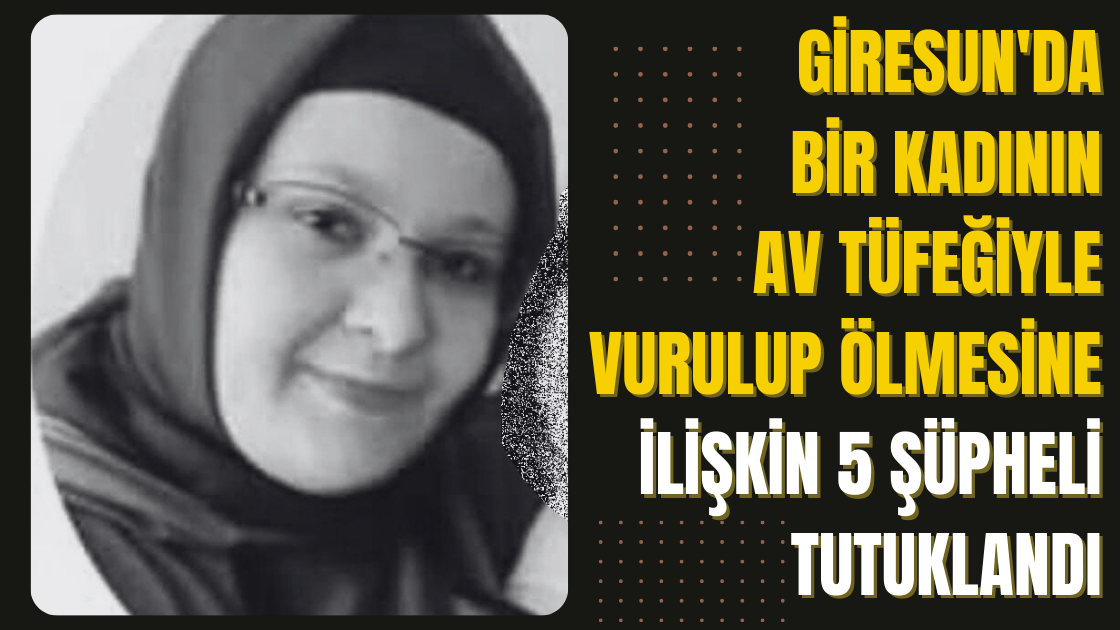 Giresun'un Dereli ilçesinde 31 Aralık 2024 Salı günü bir kadının av tüfeğiyle vurularak ölmesine ilişkin gözaltına alınan 5 zanlı tutuklandı.
