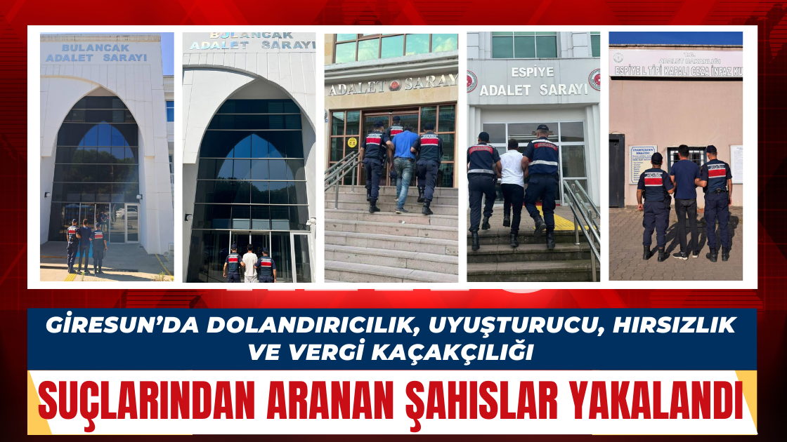 Görele İlçe Jandarma Komutanlığı ekipleri, "Muhkem Eşyayı Kırarak Hırsızlık" suçundan 12 yıl 5 ay 10 gün kesinleşmiş hapis cezası olan A.İ. isimli şahsı yakaladı. Şahıs, tutuklanarak Espiye L Tipi Kapalı Ceza İnfaz Kurumuna teslim edildi. Benzer şekilde, Tirebolu İlçe Jandarma Komutanlığı ekipleri, "Kasten Öldürme" suçundan 7 yıl 6 ay kesinleşmiş hapis cezası ile aranan N.A. isimli şahsı yakaladı. Şahıs, adli makamlarca tutuklanarak Espiye L Tipi Kapalı Ceza İnfaz Kurumuna teslim edildi.