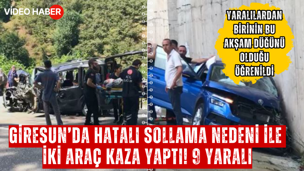 Giresun’da hatalı sollama nedeni ile iki araç kaza yaptı! 9 Yaralı