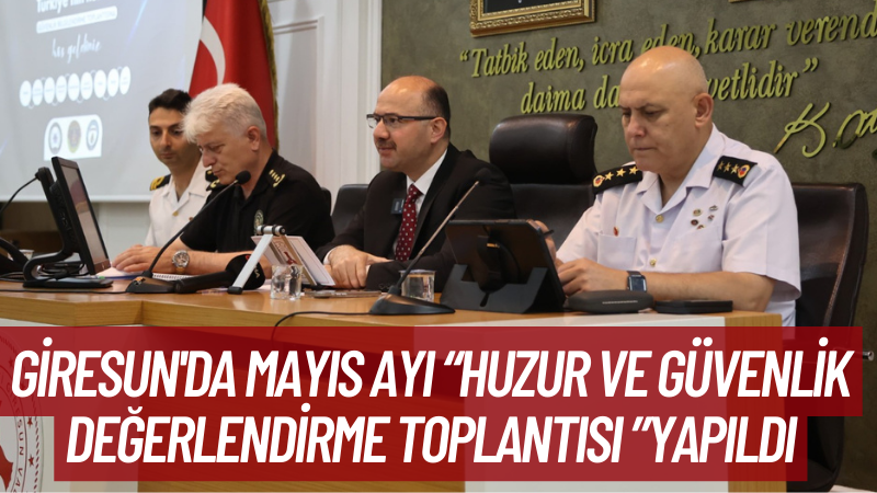 Giresun Valisi Mehmet Fatih Serdengeçti, Mayıs ayı huzur ve güvenlik değerlendirme toplantısında yaptığı açıklamada, tüm kolluk kuvvetleriyle birlikte hemşerilerinin huzur ve güvenliğini sağlamaya yönelik çalışmaların kararlılıkla sürdürüldüğünü vurguladı.