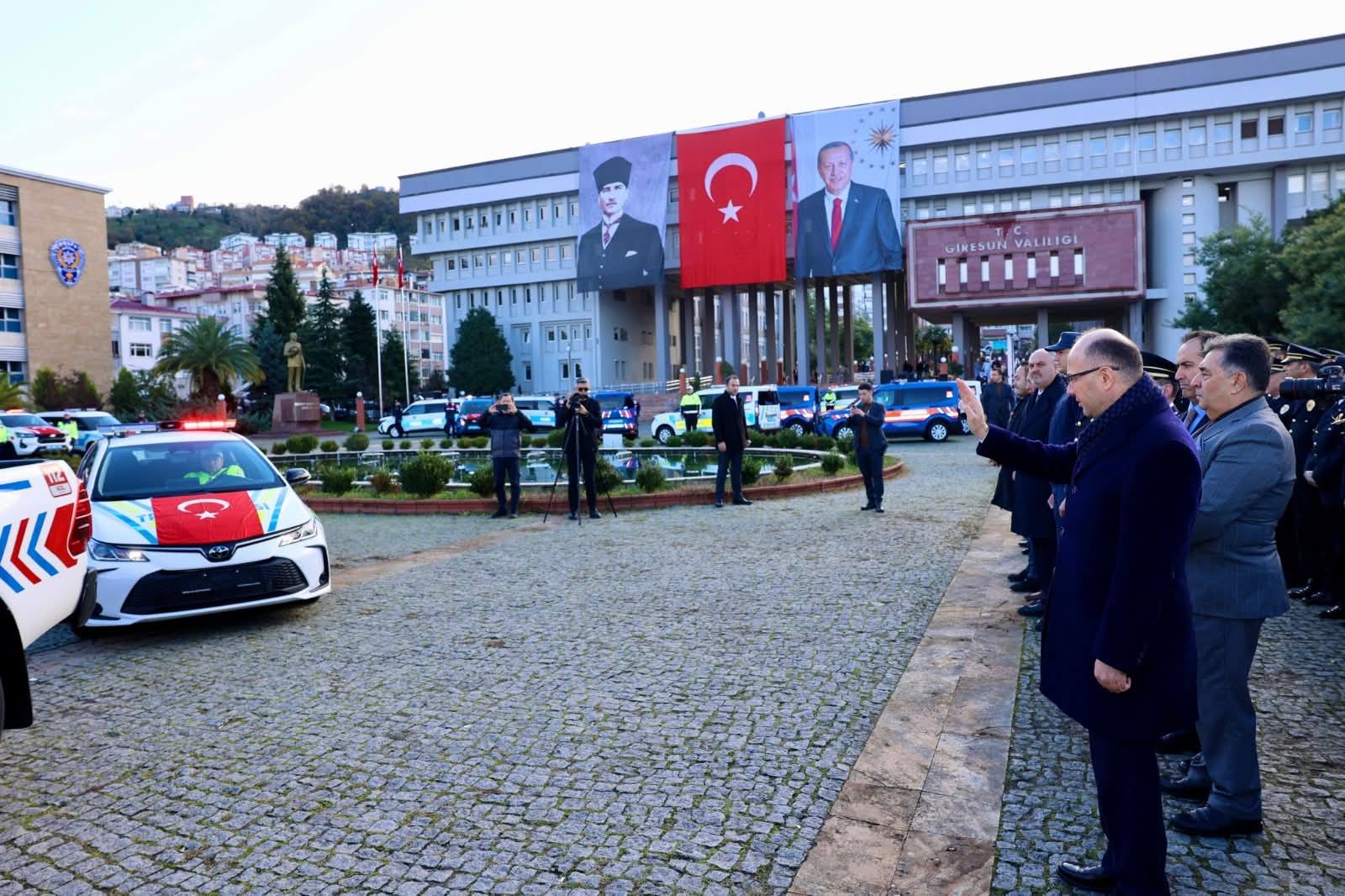 Giresun'da Jandarma Komutanlığı ile İl Emniyet Müdürlüğüne tahsis edilen 92 araç törenle hizmete başladı.