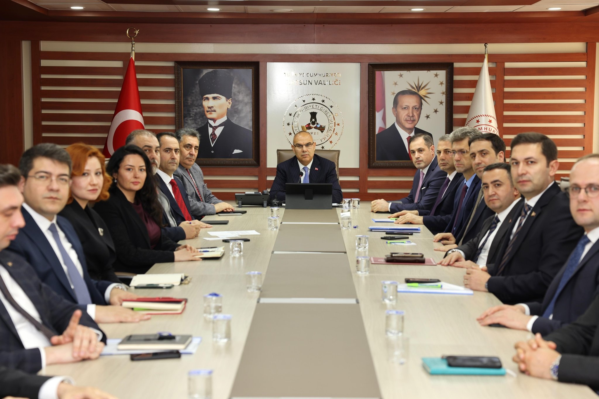 Vali Koç’un başkanlığında yapılan toplantıda, kurumlar arası koordinasyonun güçlendirilmesi ve ilçelerde yürütülen hizmetlerin yakından takip edilmesi noktasında görüş alışverişinde bulunuldu.