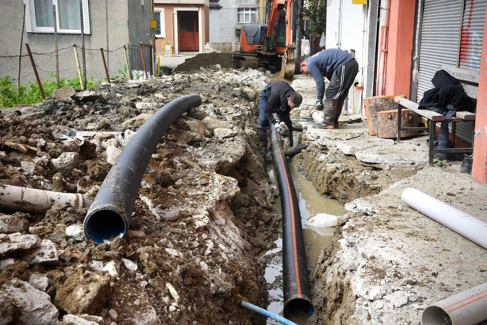 Giresun Belediyesi Su ve Kanalizasyon İşleri Müdürlüğü ekipleri, altyapıyı güçlendirme çalışmaları kapsamında Aydınlar Mahallesi’nde kanalizasyon hattı çalışması yapıyor.