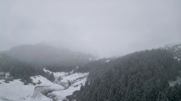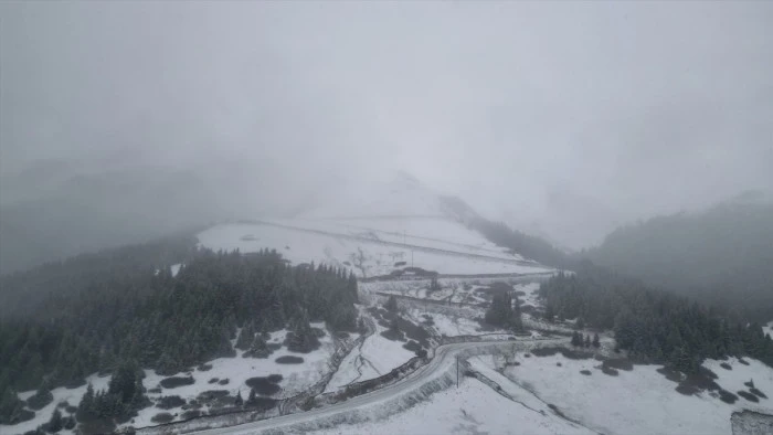 Sisin de etkili olduğu yayladaki beyaz örtü, dronla görüntülendi.