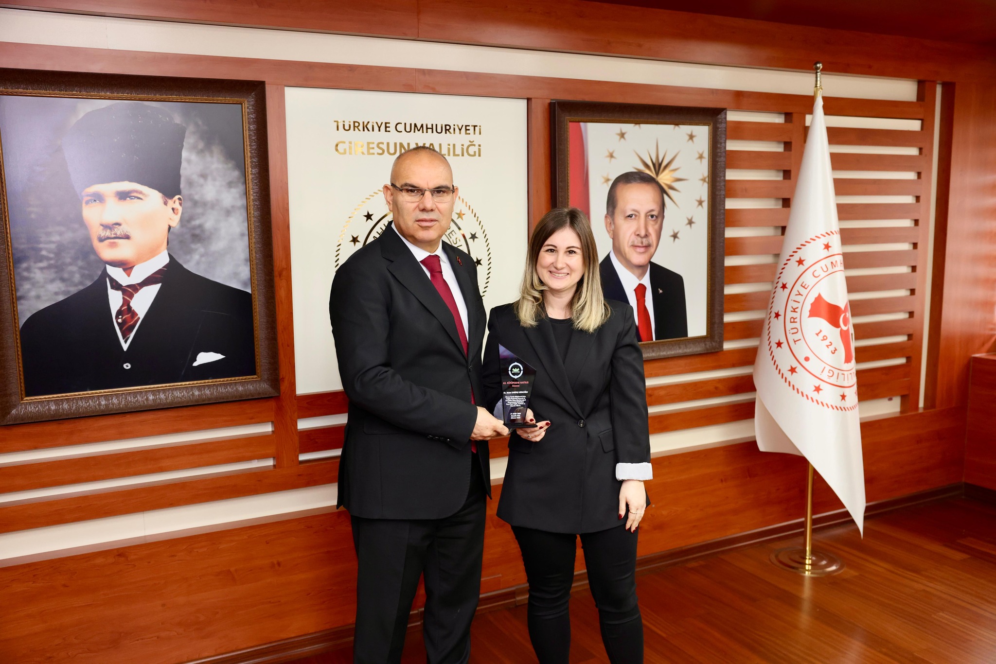 Kütüphane Haftası etkinlikleri kapsamında İl Kültür ve Turizm Müdürü Erdem Kılavuz ve beraberindeki heyet, Giresun Valisi Mustafa Koç’u makamında ziyaret etti.