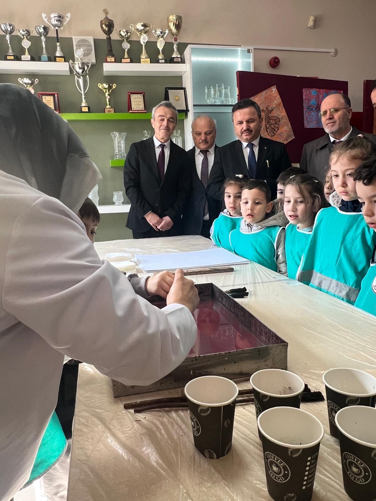 Protokol üyeleri ve katılımcılar daha sonra sergi alanını gezerek öğrencilerin hazırladığı ebru eserlerini yakından inceleme fırsatı buldu. Büyük beğeni toplayan sergi, sanatın diliyle değerlerimizin gelecek nesillere aktarılmasına katkı sağlayan anlamlı bir etkinlik olarak tamamlandı.