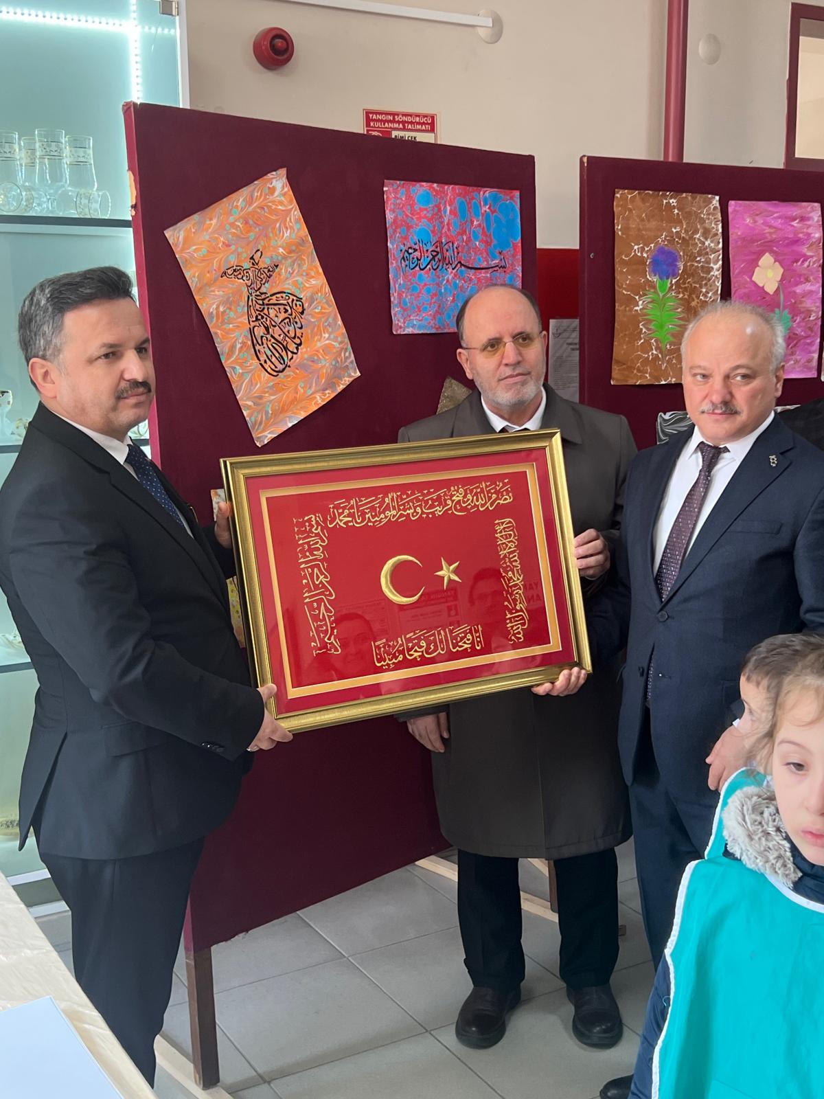 Programın devamında, öğrencilerin öğretmenleri eşliğinde büyük bir emek ve sabırla hazırladığı ebru çalışmalarının yer aldığı serginin açılışı gerçekleştirildi. İl Milli Eğitim Müdürü Özgür Tokgöz, sergide yer alan eserleri inceleyerek öğrencileri ve emeği geçen öğretmenleri tebrik etti, bu tür çalışmaların hem sanatsal gelişime hem de milli ve manevi değerlerin yaşatılmasına önemli katkı sunduğunu belirtti.