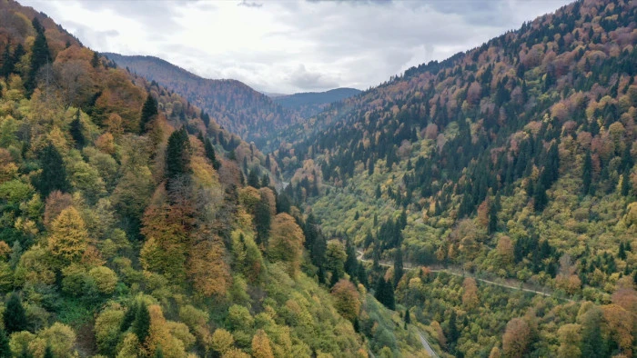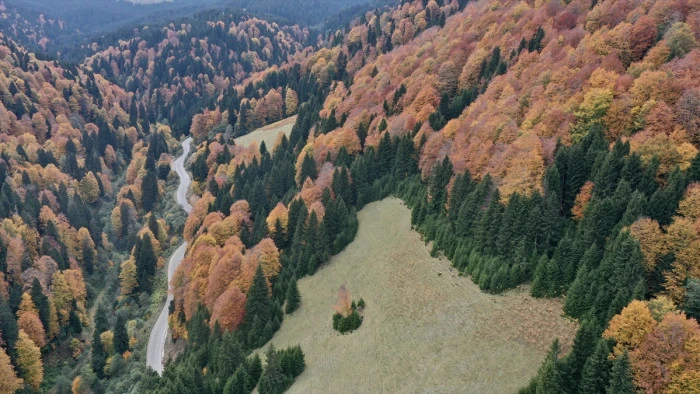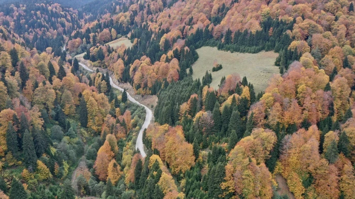 Dereli ilçesinde sonbaharla birlikte ormanlık alanlardaki ağaçlar sarı ve yeşilin tonlarına büründü.
