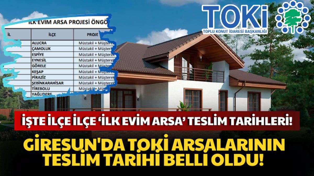 Toplu Konut İdaresi Başkanlığı (TOKİ), Türkiye genelinde başlattığı "İlk Evim Arsa" projesi kapsamında Giresun'daki arsa teslimatlarının tarihlerini açıkladı.