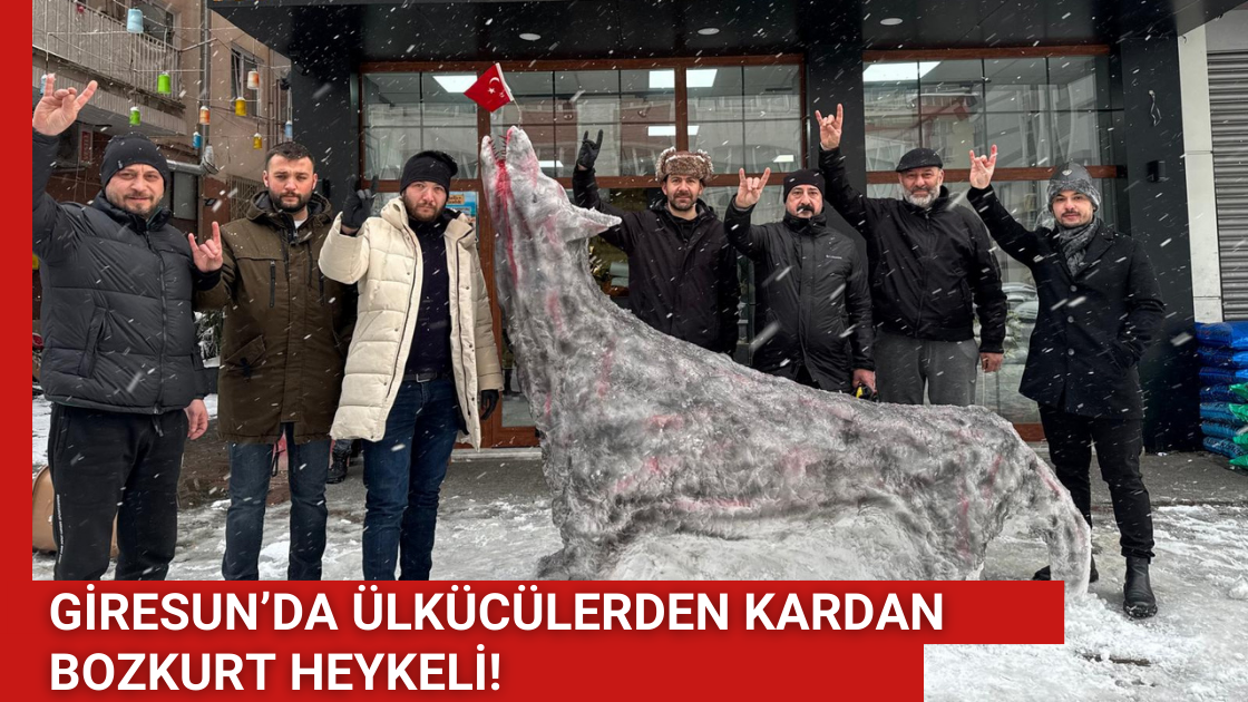 Kardan adam figürleri paylaşılırken, Giresun’da farklı bir çalışma düzenlendi. Batlamaspor Başkanı Oğuzhan Konal öncülüğünde yapılan kardan bozkurt heykeli, ülkücülerin yoğun emeğiyle ortaya çıktı. Ülkücüler, kardan bozkurtun önünde bozkurt işareti yaparak fotoğraf çektirdi.