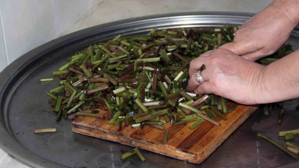 Kaldirik otu, yörede yıl boyunca tüketmek için turşu kurulmasının yanı sıra yemekleriyle de sofraları süslüyor.