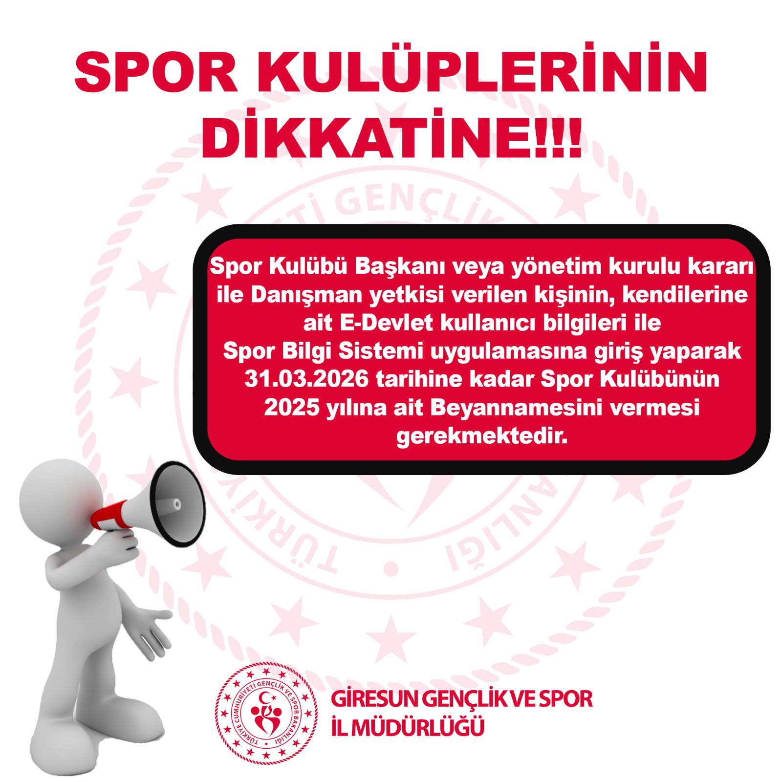 Giresun’daki spor kulüpleri için 2025 yılına ait beyanname dönemi başladı.