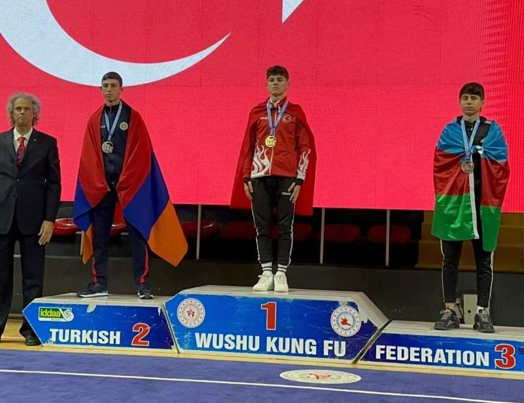 İstanbul’da gerçekleştirilen Wushu Kung Fu Avrupa Şampiyonasını sona erdi. Trük sporcuların dereceler aldığı yarışmalara Giresun’un Espiye ilçesinden katılan Furkan Cebeci de Avrupa Şampiyonluğu kazandı. Altın madalyasını alan Cebeci, İstiklal Marşı’nın okunmasının ardından yaptığı hareketi de takdir topladı. Cebeci, yarışmada 3’üncü olan Azerbaycanlı sporcuyu yanına alarak birlikte poz verdiler. İki sporcunun bu hareketleri de salonda bulunanlar tarafından alkışlandı. Bu arada MHP Giresun Milletvekili Ertuğrul Gazi Konal da bu anları sosyal medya hesabından paylaşarak şampiyonu kutladı.