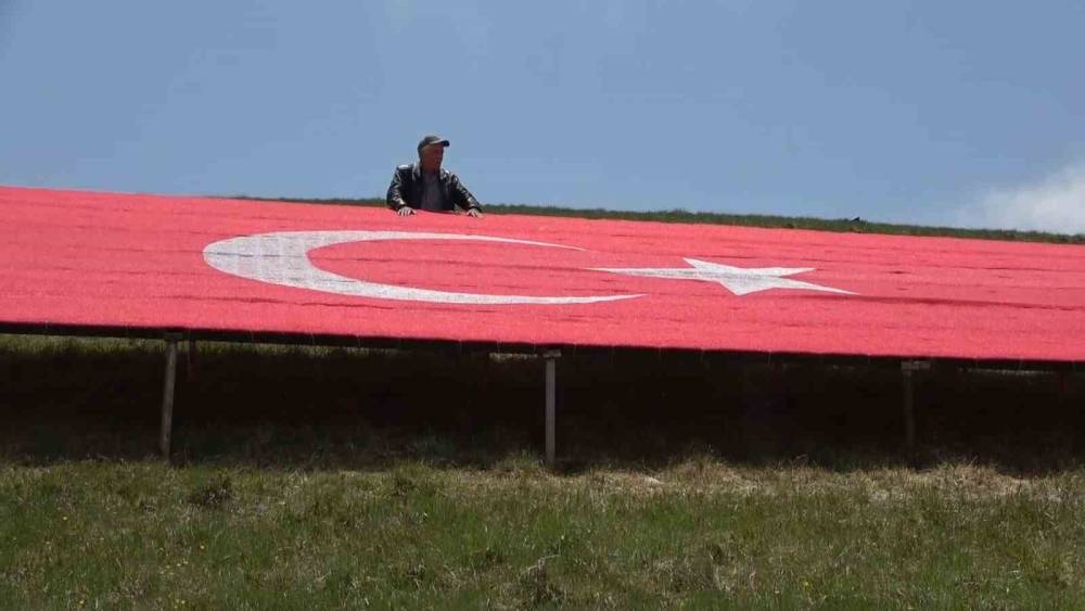Karagöl Yaylası’ndan sonra kentin en yüksek ikinci noktası olan Uzundere Yaylası’na işlenen dev bayrak, bölgedeki diğer yaylalardan da net bir şekilde görülebiliyor. Kulakkaya, Bektaş ve Kümbet yaylalarından dahi seçilebilen dev Türk Bayrağı, bölgenin yeni simgelerinden biri haline geldi.