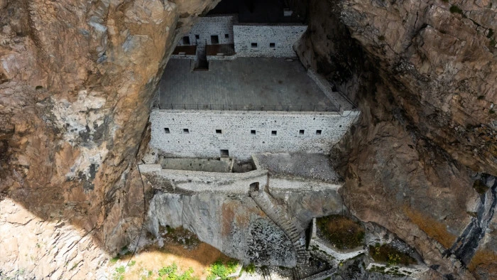 Giresun’un Şebinkarahisar ilçesine bağlı Sarıyer köyünde, sarp kayalıklar üzerine inşa edilen Meryem Ana Manastırı, eşsiz mimarisi ve tarihi dokusuyla dikkat çekiyor.