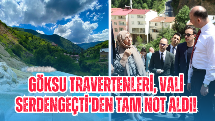 Vali Serdengeçti, Göksu Travertenleri için “Büyüleyici güzelliğiyle herkesi kendine hayran bırakan, adım attığınız andan itibaren bulutların üstünde hissettiren Göksu Travertenlerinde incelemelerde bulunduk, yapılacak çalışmaları yerinde değerlendirdik” dedi.