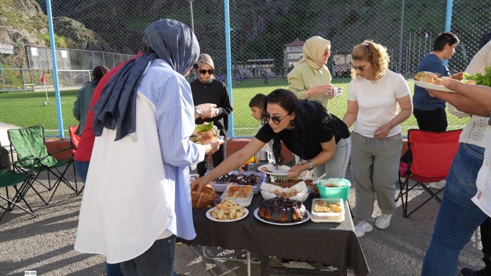 Gümüşhane’de futbol oynayan minik sporcuların anneleri, her maçta çocuklarını yalnız bırakmayarak tribünlerin neşe kaynağı olurken, yaptıkları pasta ve böreklerle tribünlerde adeta gün yapıyorlar.Trabzonspor Futbol Okulu ve Dumlupınar Ortaokulu Spor Kulübü’nde futbol oynayan ve hafta sonları düzenlenen altyapı maçlarında sahada ter döken minik futbolcuların en büyük destekçileri yine anneleri oluyor. Tribünlerde çocuklarına tezahüratlarla moral veren anneler, aynı zamanda maçları adeta birer sosyal etkinliğe dönüştürüyor. Yanlarında getirdikleri pasta, börek ve içeceklerle maç günlerini gün havasına çeviren anneler, hem çocuklarının heyecanına ortak oluyor hem de aileler arasında kaynaşma sağlıyor.Annelerin bu anlamlı desteği, hem antrenörlerin hem de çocukların motivasyonunu artırıyor. Tribünlerdeki renkli görüntüler, maçlara ayrı bir güzellik katarken, minik sporcular da annelerinin desteğiyle sahada daha özgüvenli mücadele ediyor."Hem gün yapıyoruz hem de çocuklarımıza destek oluyoruz.Çocuklarını hiçbir maçta yalnız bırakmadıklarını ve her maçta saha kenarında çocuklarını desteklediklerini ifade eden Ebru Akagün Karaaslan, "Biz anneler olarak çocuklarımızı hiç bırakmadık. Gümüşhane zaten küçük bir il olduğu için biz anneler olarak hep birbirimizi tanıyoruz ve toplu bir organizasyonda bütün annelerle aynı enerjiyi yakaladık. Haftada 2 maçta annelerimiz babalarımız her hafta istisnasız hep birlikte buradayız. Çocuklarımız yense de yenilse de her şartta buradayız. Bu süreçte anneler börekler çörekler yaparak devre arasında çayımızı pastamızı böreğimizi alıyoruz biz de onlarla birlikte hem bir gün yaparmış gibi vakit geçiriyoruz hem de stres atıyoruz ve eğleniyoruz. Çocuklarımıza faul yapıldığında anne olarak tabi ki duygu yoğunluğu yaşıyoruz ama onlar kalktıkları yerden yine devam ediyorlar" dedi."Kadın eli değdiği zaman tüm maçlarımız festival havasında geçiyor"Annelerin yaptıkları etkinliğin futbolun birleştirici ruhuna katkı sağladığını söyleyen Dumlupınar Ortaokulu Spor Kulübü altyapı sorumlusu ve Trabzonspor Futbol Okulu antrenörü Alptuğ Furkan Yılmaz, "Biz bir proje yaptık Dumlupınar Ortaokulu beden eğitim öğretmeni Ahmet Aydın ve Trabzonspor Futbol Okulu kurucularından Fethi Dabağ başkanlığında bir amatör kulüp kurduk. Burada Trabzonspor Futbol Okulu’ndaki çocuklarla ve ortaokuldaki çocuklarla bir havuz oluşturduk buradan belirlediğimiz oyuncularla 2 yıldır müsabakalara çıkıyoruz alt yaş gruplarında. Bu müsabakalarda da futbol okulumuzdaki oyuncuların anneleriyle de sahaya kadın eli değmiş oluyor. Bu şehrimizde daha önce olmamış bir şey ve hem bizlerin, hem rakiplerin hem de kamuoyunun çok hoşuna gidiyor. Kadınlar kendi aralarında bir grup oluşturmuş kendilerine ‘Dumlupınar Anneleri’ demişler. Bu grupta herkes iş bölümü yapıp börekler, sarmalar yapmış. Burada hem oturuyorlar, güzel bir haftasonu geçiriyorlar hem de çocuklarını destekliyorlar. Bir erkek sporu olarak görülen futbola bir kadın eli değdiği zaman sahada bütün maçlarımız festival havasında geçiyor bu da futbolun birleştirici ruhuna, amatör futbolun ruhuna katkı sunuyor" diye konuştu."Pas ver diyorlar devre arasında yemek yediriyorlar"Annelerinin kendilerine verdiği desteklerle maçları kazandıklarını belirten Şahin Yağız Dabağ (10), "Ben 6 yıldır futbol oynuyorum şu anda da Dumlupınar altyapısındayım. Annelerimiz bize çok destek oluyor onların sayesinde kazanıyoruz. Çok iyiler hepsi destek veriyor. Marş söylüyorlar, şarkı söylüyorlar, pas ver diyorlar, yemek yediriyorlar o kadar çok şey yapıyorlar ki anlatmaya yetmez. Onların burada olması ve mutlu olması bana güç veriyor" ifadelerini kullandı.