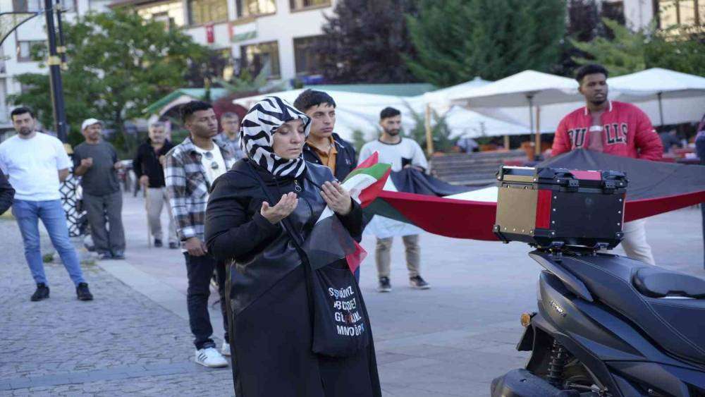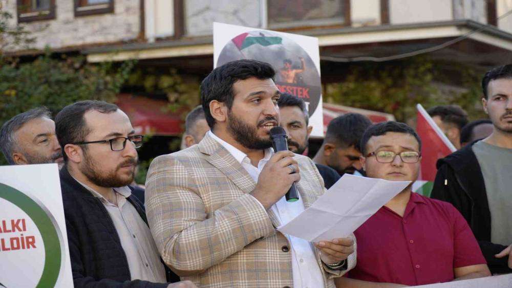 15 Temmuz Zafer Meydanı’nda sona eren yürüyüşün ardından tüm STK’ler adına basın açıklamasına okuyan AGD Gümüşhane Şube Başkanı Furkan Ustakurt, Gazze işgalinin ve Müslümanlara yapılan zulmün bir an önce sona ermesi gerektiğini söyleyerek, “Batı’yı arkasına alan İsrail, bütün bölgeyi ateşe vermeye başladı. Geçen yıl Gazze’de başlayan vahşet ve soykırım bugün Lübnan ve Yemen’e de sıçramış durumda. Bugün bu meydanda, Filistin halkının haklı mücadelesine ve direnişine destek olmak, Gazze’den sonra Lübnan’a sıçrayan, Yemen’i de hedef alan bu alçakça işgale, katliam ve soykırıma dur demek için buradayız. Türkiye, uzun zamandır bu uyarıyı yapıyor. Sayın Cumhurbaşkanı’nın geçen haftaki uyarısı bu noktada çok önemli. İsrail’in bir sonraki hedefi Türkiye olacaktır. Emperyalist stratejilerle Siyonist İsrail’in arz-ı mevud hedefi birbiriyle örtüşüyor. Doğu Akdeniz’deki savaş gemilerini, katil rejime yapılan silah yardımlarını başka nasıl açıklayabiliriz? Kirli bir oyunla karşı karşıyayız. Onun için tekrar altını çizmekte fayda var: Türkiye’nin savunması Gazze’den başlar” dedi.