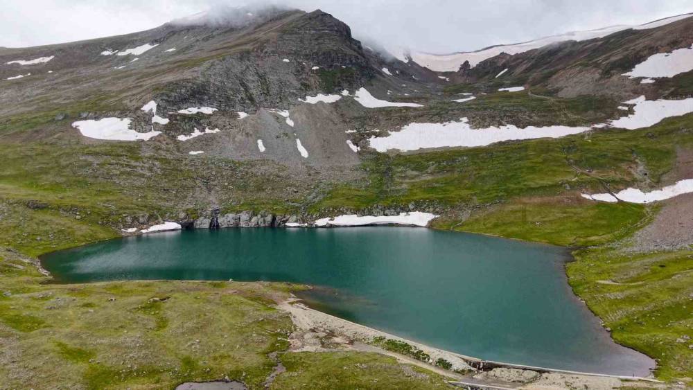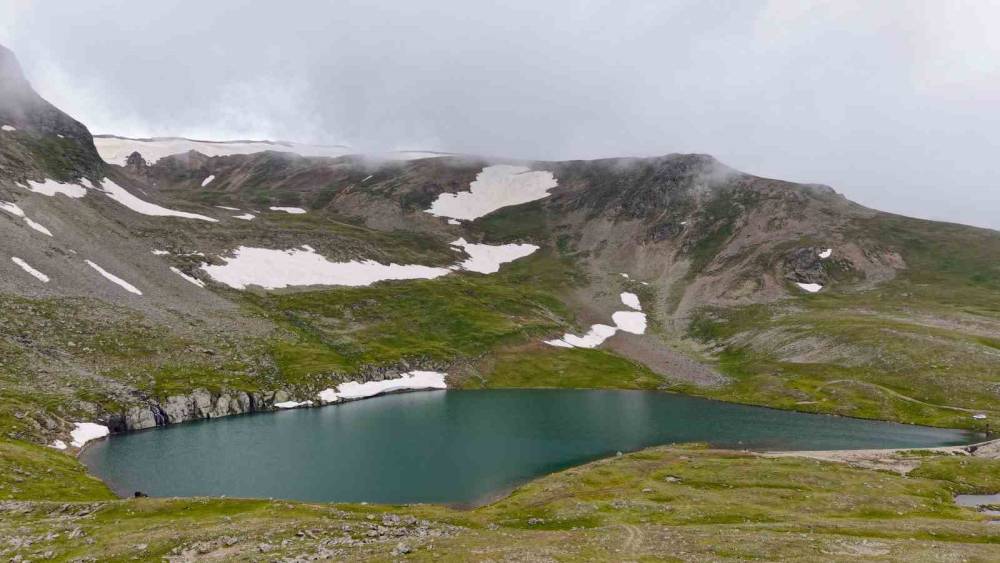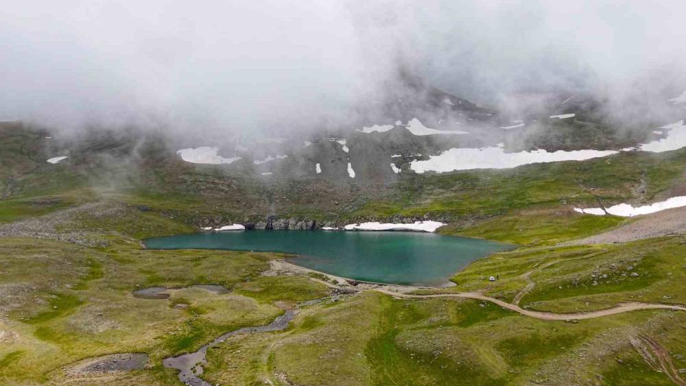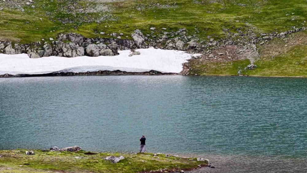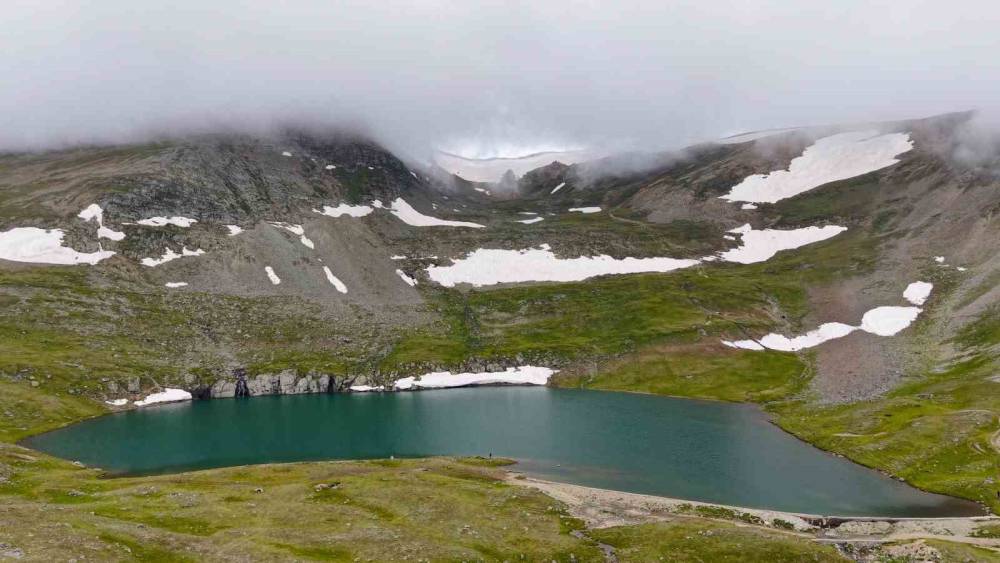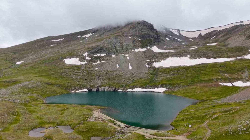 Yalnızca yaz mevsiminde ulaşım sağlanabilen Çakırgöl, haziran ayının sonlarına gelinmesine rağmen çevresindeki yüksek yamaçlarda hâlâ kış mevsimini andıran kar tabakalarıyla karşılıyor ziyaretçilerini.