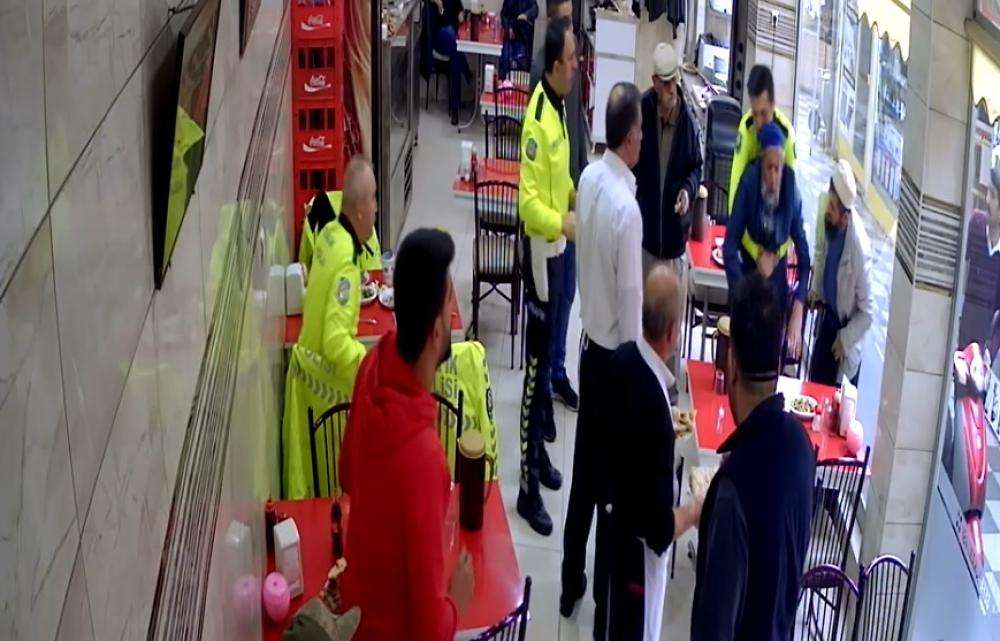 Bu sırada yan masada bulunan Sungurlu İlçe Emniyet Müdürlüğü Trafik Denetleme Şube Müdürlüğünde görevli polis memuru Bünyamin Temiz, yerinden kalkarak yaşlı adamın yanına gitti.