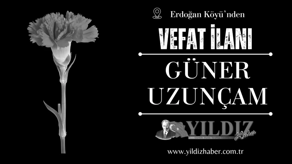 Erdoğan Köyü'nden, Çambaşoğulları'ndan, merhum Necati Uzunçam'ın eşi; merhume Figen Tosun, Fatma Sıddıka Güner, Halis ve Mustafa Uzunçam'ın anneleri; emekli imam hatip İlyas Güner'in kayınvalidesi Güner Uzunçam vefat etti.